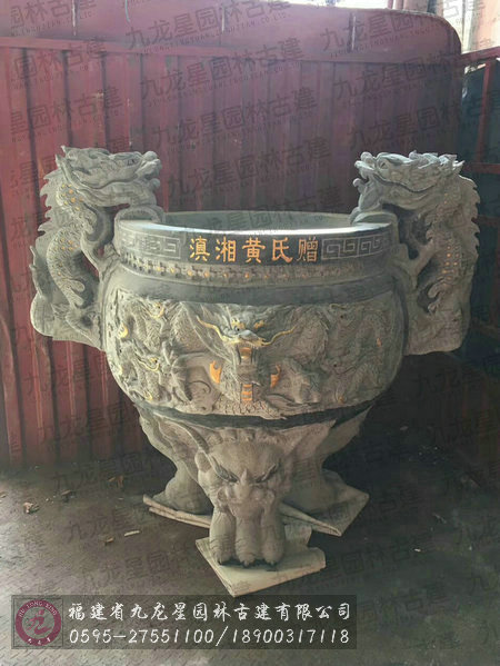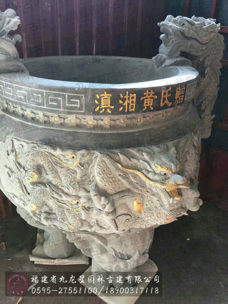 古厝祖祠用品 雕龍香爐三足石雕圓爐發貨