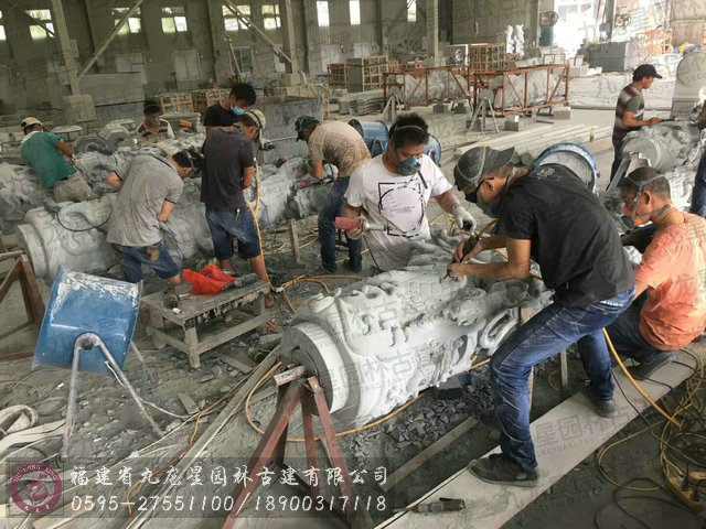 大量石雕青石龍柱現場加工中