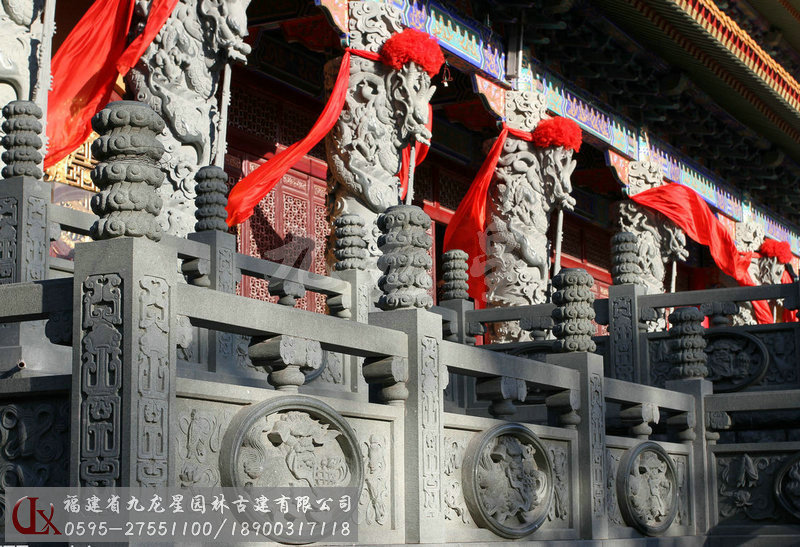 九龍星園林古建加工的寺廟石雕龍柱有單龍柱、雙龍柱、滾龍柱、盤龍柱、蟠龍柱、華表柱、龍鳳柱、八仙龍柱、青石龍柱等多種造型雕刻。我們通過專業且標準化的采購渠道,甄選優質的礦料,加工的寺廟石雕龍柱,大批量應用于寺廟建筑裝飾美化,贏得客戶好評。