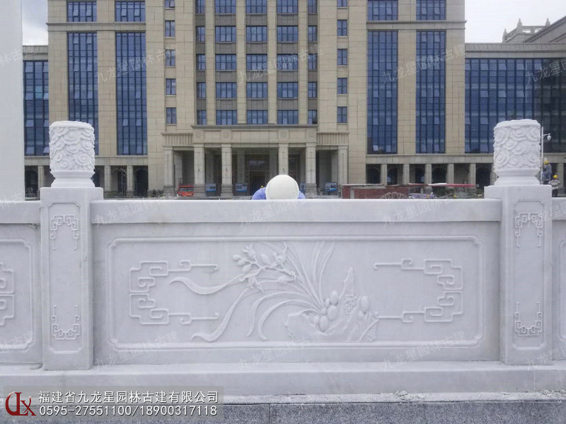 深圳案例-梅蘭竹菊浮雕面漢白玉欄桿安裝完成