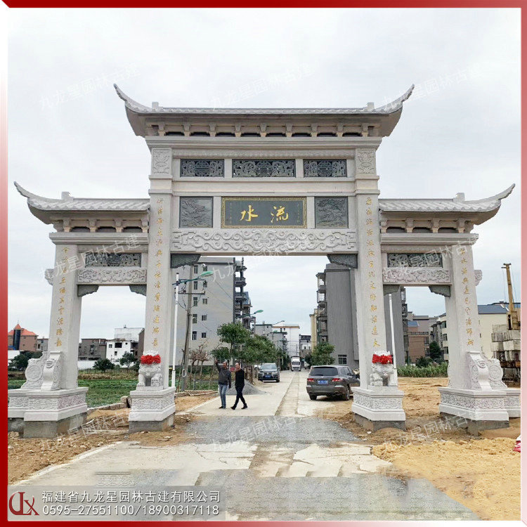 石雕三門牌坊,三門三樓石雕牌坊在雕刻藝術(shù)上也獨具特色,通常中門以深浮雕、透雕為主,邊門雕刻的是淺浮雕吉祥花鳥,形成呼應(yīng)、疏密、節(jié)奏感和韻律。有的則雕刻祥龍騰云駕霧浮雕,雕刻這種浮雕圖案的石牌坊可以帶來吉祥好運,村莊安裝這樣的一座三門三樓石牌坊可以化解當?shù)馗鞣N不好的風水煞,這種村莊石雕牌坊可以改善村莊運氣,使村莊紅紅火火,人財兩旺。