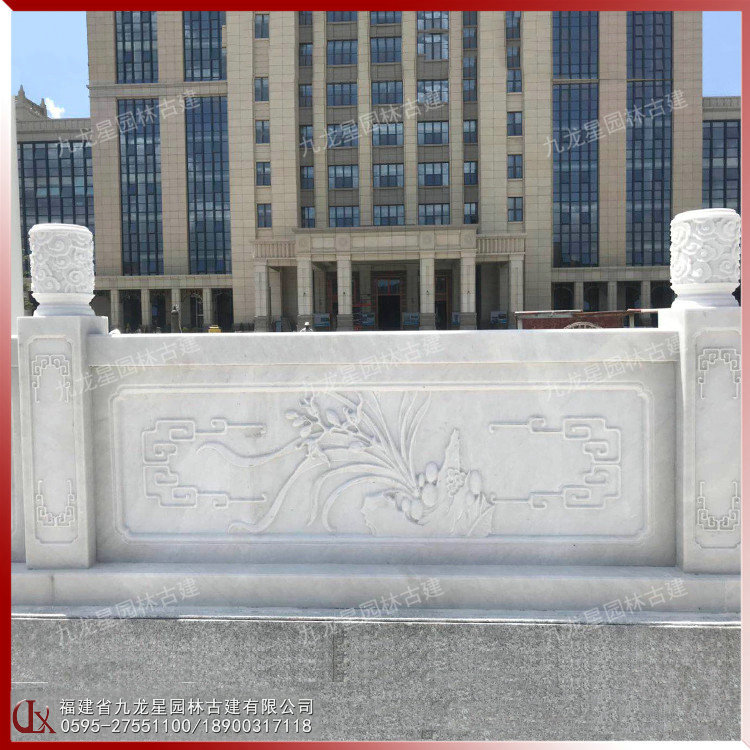 學(xué)校廣場(chǎng)石雕防護(hù)欄 漢白玉欄桿石雕圖片