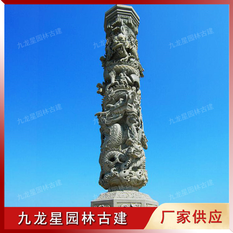 石雕華表圖 定制石雕龍柱華表 聯(lián)系九龍星園林古建