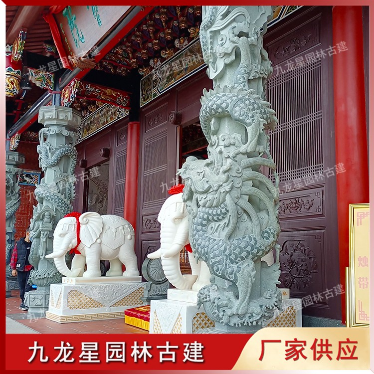 寺廟門前的龍柱石雕圖片 石頭雕刻龍抱柱 石雕盤龍柱