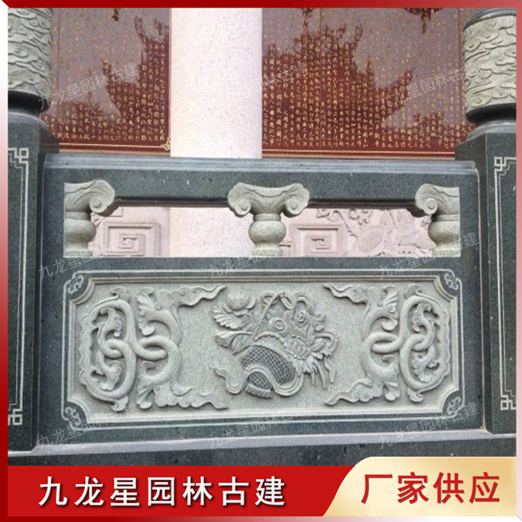 暗八仙紋飾石雕浮雕欄桿圖片 寺廟石欄桿護欄定制 九龍星