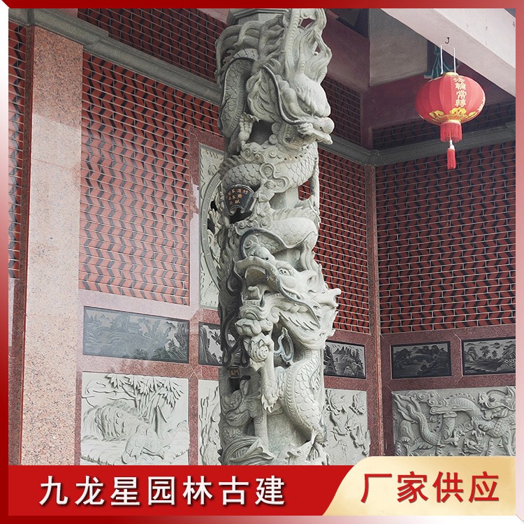 盤龍柱石雕 青石雕龍柱 寺廟石雕龍柱的應用 九龍星