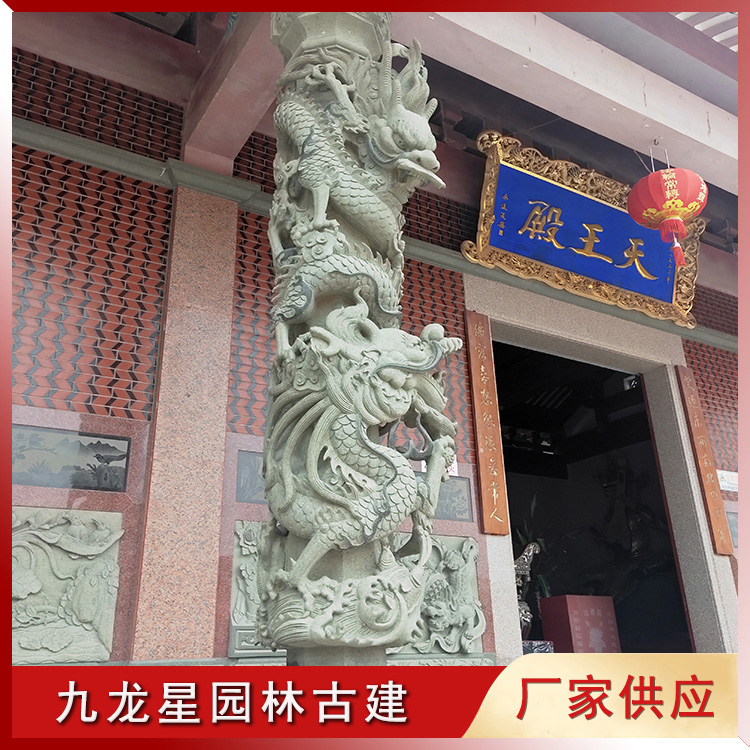 佛教寺廟中石雕龍柱的應用,是一種非常好的祈求吉祥如意的象征。寺廟石雕龍柱按材質分:有青石龍柱、花崗巖龍柱、大理石龍柱、漢白玉龍柱等。